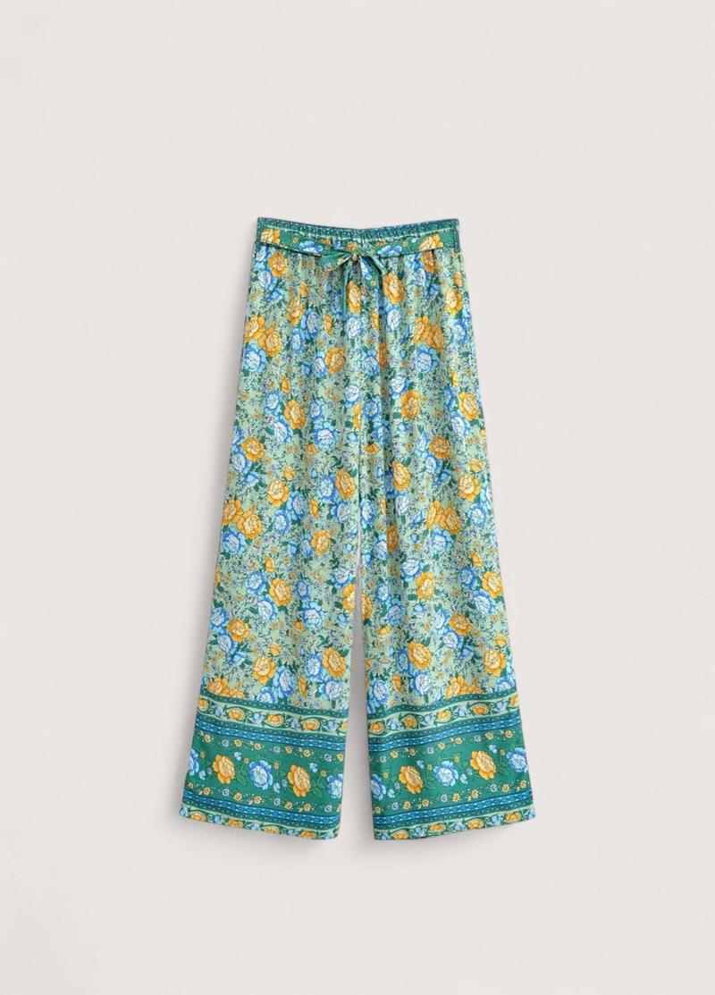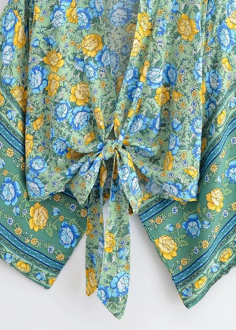 Kimono court et pantalon assortis en ensemble fleuri bleu