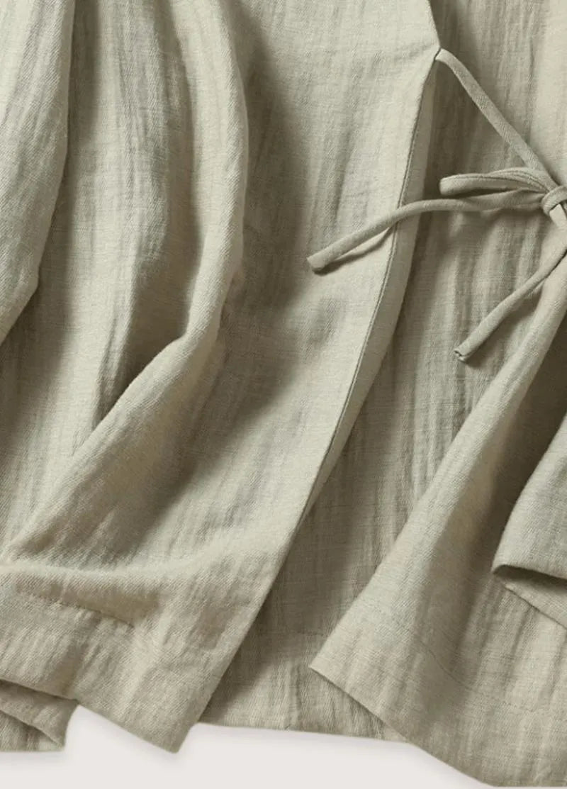Ce kimono court japonais femme sublime votre silhouette avec son élégance naturelle et sa teinte verte apaisante. Confectionné dans un lin de haute qualité, ce vêtement traditionnel offre une respirabilité exceptionnelle et un confort optimal pour toutes les saisons.